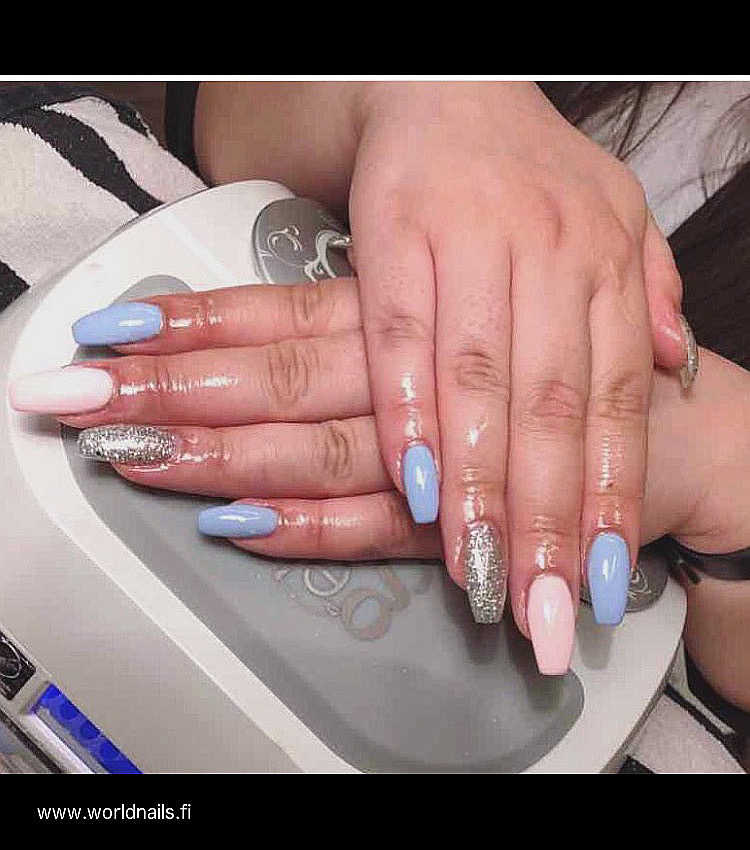 - ombre-puuteri (akryyli, puuterigeeli, UV-geeli)